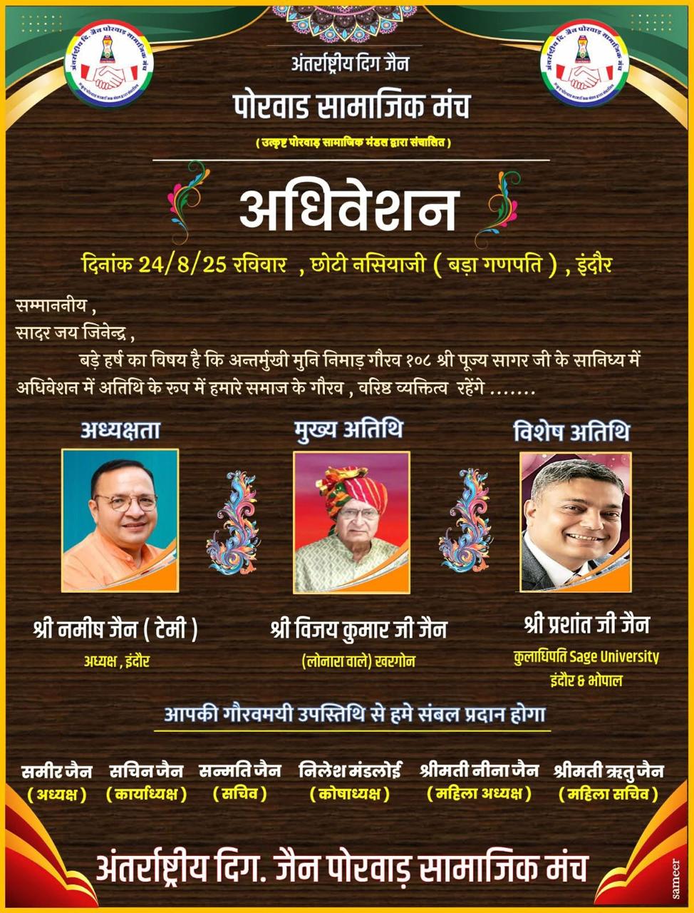 “पोरवाड़ सामाजिक मंच परिवार, हर्ष एवं उल्लास के साथ आप सभी को वार्षिक स्नेह सम्मेलन 2025 में आमंत्रित करता…